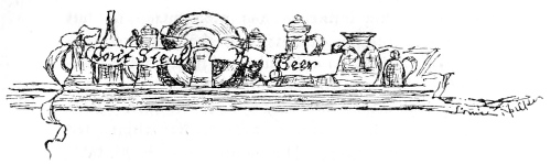 WHAT next! A glass of good Münchner beer, and away we go to Munich on the “Schnell Zug” (fast train), over a rolling, pleasant country, past pretty railway stations covered with vines and gay with flowers, as all German windows are; past switchmen in flaming scarlet jackets, who stand at the switches, raising their hand to their temple in a military salute as we go by. As you travel by rail through Bavaria you see the conductors and guards dismount from the train at the little country stations to replenish their mugs. Beer takes the place of water. When you arrive at Munich, pre-eminently the beer capital of the world, the porters set their mugs down on the platforms anywhere to solicit your custom. The ever-present stein stands beside the cab-wheel. Next to London, Paris, and Berlin, Munich is visited by more travellers than any other European city. Gradually this influence has modernized it, but there still remain sufficient of the old Bavarian curiosities of life to entertain and instruct the travelled worldling. Nobody here thinks of doing anything without an accompaniment of beer. It is always in order: before breakfast, after dinner, the inevitable nightcap. The youngsters sit at table and sip it when they are too young to leave their mothers’ laps. We have listened to loud yelps go up over the contention for the stein between babies; still they are not a nation of drunkards. The law prescribes how much beer you shall give your servants daily. Thank fortune, it has no power to regulate the appetite of the private consumer. You sweeten all chores, whether to chop wood, shovel coal, or chaperon a party to an art gallery, with a glass or stein of beer. Strange as it seems here, where art has attained its highest, the consumption of beer seems to be the prime business. One of the curious decorations of Munich streets is its mugs and bottles; some full, some empty, hem one in on all sides. They are left indifferently by the owners, but none are ever stolen. The cardinal command for every Bavarian is, “You shall not steal my beer.” It is a panacea, food, and drink. If you don’t drink beer at all, the Bavarian does not think you are merely odd, but he thinks you are in danger in mind and body.