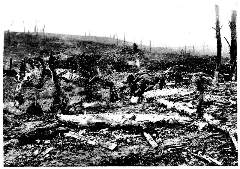 No! The wood of Bernafay is a wood no longer, and so it is with all the pretty woods of this neighbourhood, Trônes, Belville and Foureaux. How is one to describe this ghastly picture of roots, clayey soil freshly ploughed up, shattered trunks of every size, and dismal stumps, among which, none the less, the birds persist in their vain search for food and cover?