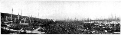 There is universal destruction, as though a huge tidal-wave, overrunning the plain and the valley, had been struck by God's anger and checked in the full force of its rolling waters. The evening of the last day could bring no greater melancholy. Three horrors rule this strip of land—Fright, Death and Frost. A bitter cold night with a starry sky—such was Christmas in "No Man's Land."