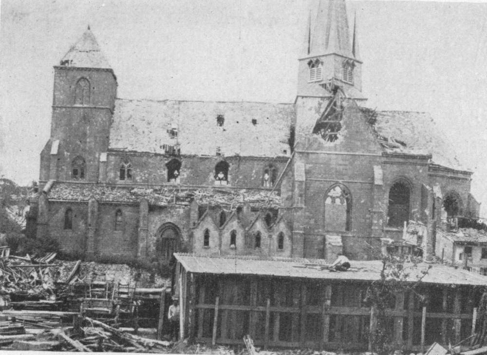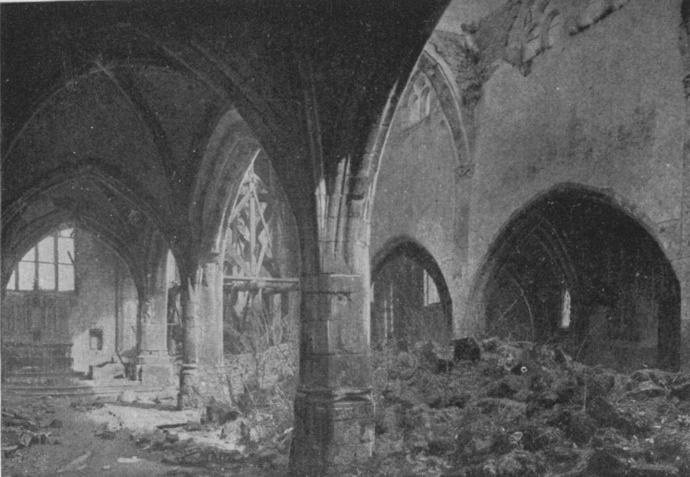 The Gothic nave is large and high, the springing of the vaults resting on sculptured capitals. Fragments of old stained-glass, still to be found in some of the windows before the war, were destroyed by the bombardments.