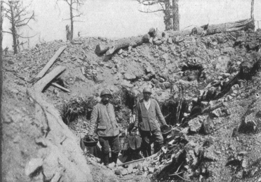 In October, 1914, the line, as a whole, crossed the entire width of the Argonne, from the north of Vienne-le-Château to the north of Neuvilly. As a matter of fact, there was no continuous line, the French troops holding only rudimentary trenches, as stationary warfare was still distasteful to them. They believed the pause to be but temporary, and that they would soon resume the advance. They constantly attacked the Germans, who, equally aggressive, endeavoured to gain ground, and to wear down the French resistance by attacks on trenches, and by ceaselessly-renewed local engagements.
