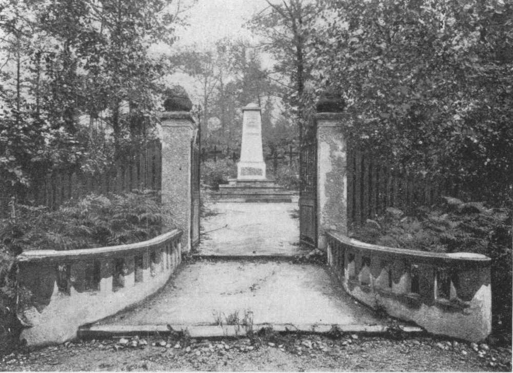Keep straight on: 1 km. 800 further on, at the cross-roads, near the site of the Forest Keeper’s Lodge, there is a large military cemetery. The Lodge was completely destroyed.