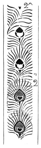 We put a second tie in the lower loop to strengthen it as I have done in several cases among those designs given. Take another case, the flower in Fig. 1C. By cutting each petal separate and the centre as a circle we get a very effective stencil, for the "ties" give form to the design. Take them away, and instead of a daisy we should only have a circular open space of no interest. One of the arts of successful stencil cutting is to make the "ties" form part of the design, and by a little management this can be done. I don't wish to point to my own work more than to say{189} you can learn the method of stencil cutting by referring to the designs I have given to illustrate the subject.