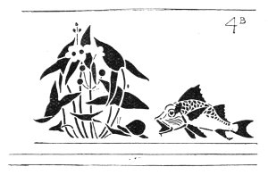 By cutting a design out of two plates you can get a much more elaborate design and scheme of colour. The water in the arrow-head and fish frieze, Fig. 4, is a case in point, for the water lines and flowers can be in light tones of colour, while the fish and foliage are in darker ones, and by this means relief is obtained.