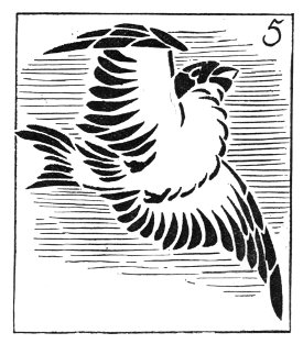Birds, insects, fish, can all be cut as stencils if you attend to this ornamentalising which is necessary. The two flying birds, Figs. 5 and 6, are modelled on Japanese designs, and by a little management very excellent effects can be produced. Butterflies too can be made into very effective stencils, and in one case I have introduced a background suggested by a spider's web, Fig. 1. By only using the butterfly out of one plate and the web background out of the other we obtain a third combination as in Fig. 1A.