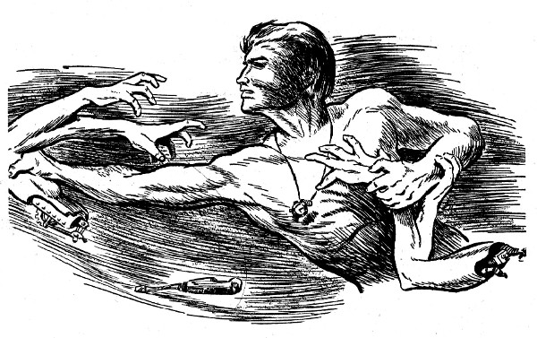 While Roddie investigated by touch, his long fingers were suddenly seized and bitten. At the same time, his right shin received a savage kick. And his own retaliatory blow was checked in mid-swing by an unexpected voice.