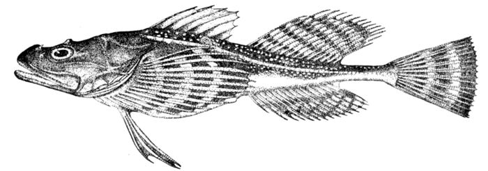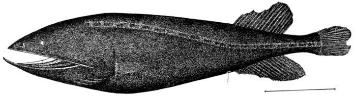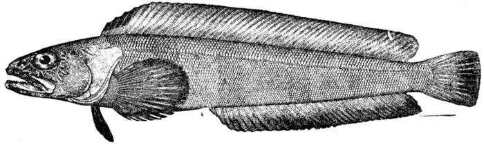 Gill separates the "three-forked hake" (Raniceps trifurcus) of northern Europe as a distinct family, Ranicipitidæ. In this species the head is very large, broad and depressed, differing in this regard from the codlings and hakes, which have also 540two dorsal fins. The deep-water genus, Bathyonus, is also regarded as a distinct family, Bathyonidæ.
