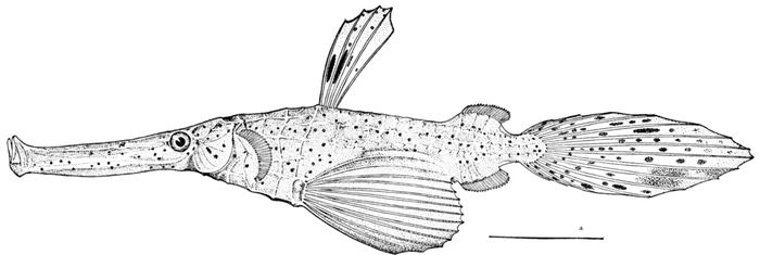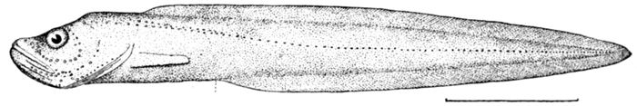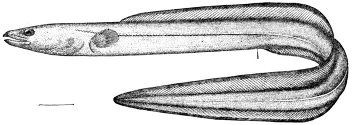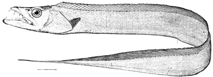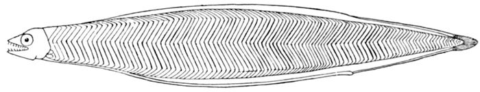 The Murænolepidæ are deep-sea fishes, with minute eel-like scales, and no caudal fin. The ventrals are five-rayed and there are 10 pterygials.