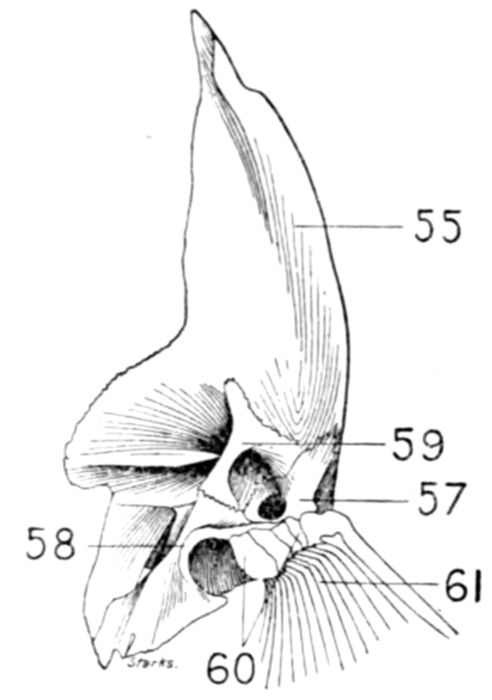 Fig. 502.—Shoulder-girdle of a Batfish, Ogcocephalus radiatus (Mitchill).