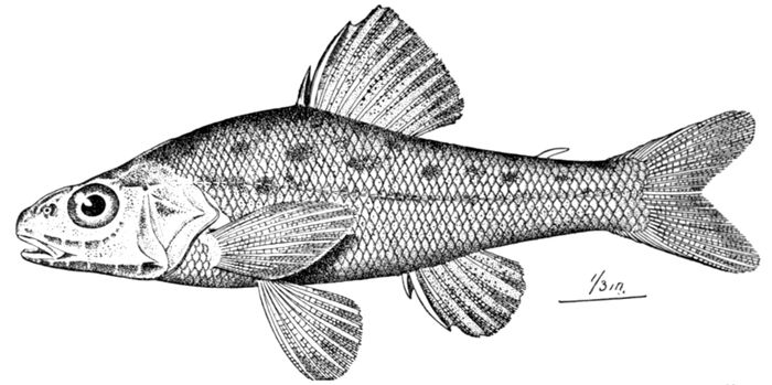 The European burbot, Lota lota, is common in the streams and lakes of northern Europe and Siberia. It is a bottom fish, coarse in flesh and rather tasteless, eaten sometimes when boiled and soaked in vinegar or made into salad. It is dark olive in color, thickly marbled with blackish.