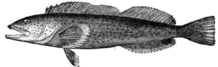 The American burbot, or lawyer (Lota maculosa), is very much like the European species. It is found from New England throughout the Great Lakes to the Yukon. It reaches a length of usually two or three feet and is little valued as food in the United States, but rises much in esteem farther north. The liver and roe are said to be delicious. In Siberia its skin 539is used instead of glass for windows. In Alaska, according to Dr. Dall, it reaches a length of six feet and a weight of sixty pounds.
