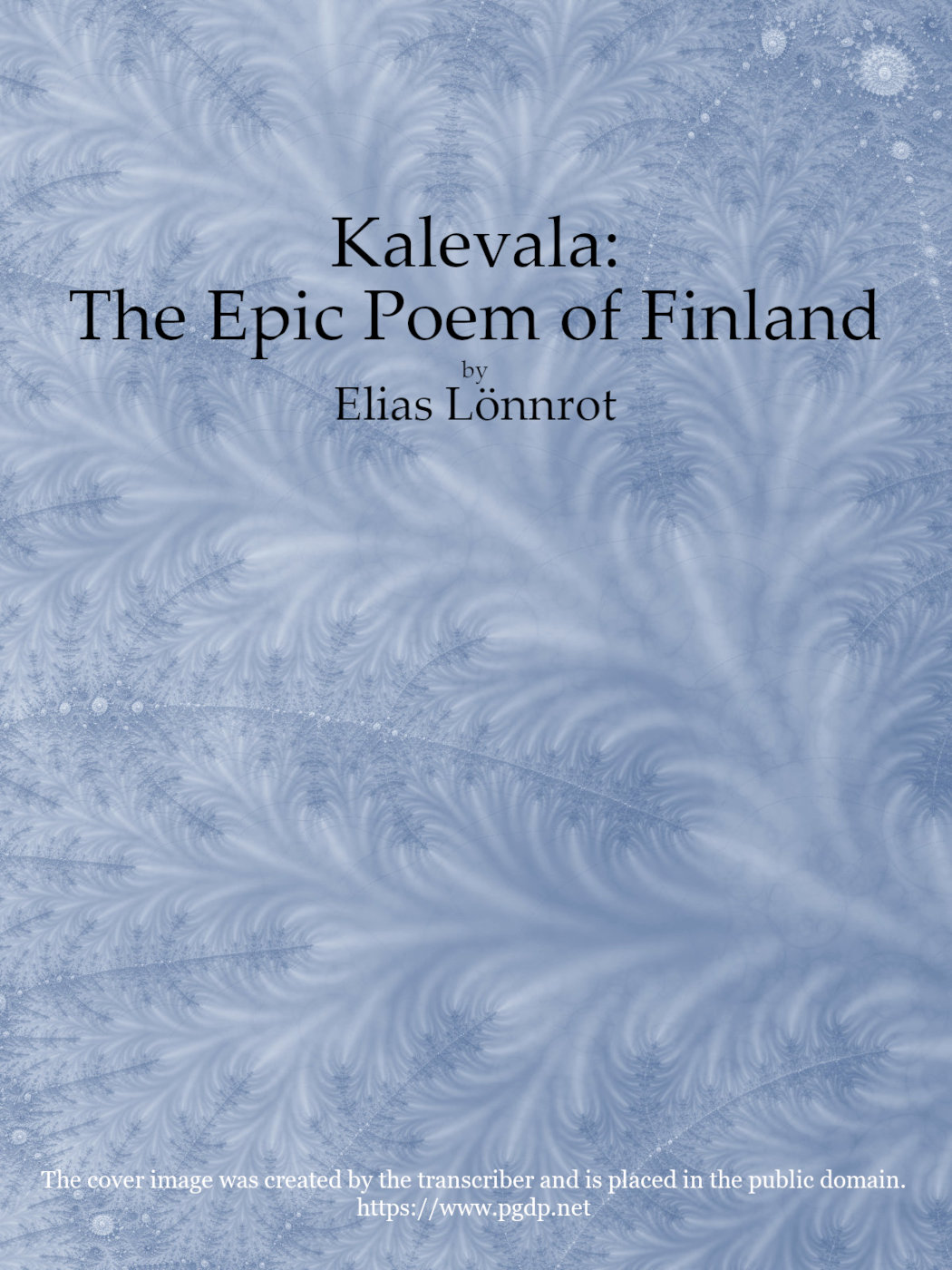 Acknowledgment is hereby made to the following sources of information used in the preparation of this work: to E. Lenquist’s De Superstitione veterum Fennorum theoretica et practica; to Chr. Ganander’s Mythologia Fennica; to Becker’s De Vainamoine; to Max Müller’s Oxford Essays; to Prof. John A. Porter’s Selections from the Kalevala; to the writings of the two Grimms; to Latham’s Native Races of the Russian Empire; to the translations of the Kalevala by Alex. Castrén, Anton Schieffier, L. LeDuc and Ferdinand Barna; and especially to the excellent treatises on the Kalevala, and on the Mythology of the Finns, by Mace Da Charda and Alex. Castrén; to Prof. Heléna Klingner, of Cincinnati, a linguist of high rank, and who has compared very conscientiously the manuscript of the following pages with the German translation of the Kalevala by Anton Schiefner; to Dr. Emil Reich, a native Hungarian, a close student of the Ugrian tongues, who, in a most thorough manner, has compared this translation with the Hungarian by Ferdinand Barna, and who, familiar with the habits, customs, and religious notions of the Finns, has furnished much valuable material used in the preparation of this preface; and, finally, to Prof. Thomas C. Porter, D.D., LL.D., of Lafayette College, who has become an authority on the Kalevala through his own researches for many years, aided by a long and intimate acquaintance with Prof. A. F. Soldan, a Finn by birth, an enthusiastic lover of his country, a scholar of great attainments, acquainted with many languages, and once at the head of the Imperial Mint at Helsingfors, the capital of Finland. Prof. Porter has very kindly placed in the hands of the author of these pages, all the literature on this subject at his command, including his own writings; he has watched the growth of this translation with unusual interest; and, with the eye of a gifted poet and scholar, he has made two careful and critical examinations of the entire manuscript, making annotations, emendations, and corrections, by which this work has been greatly improved.