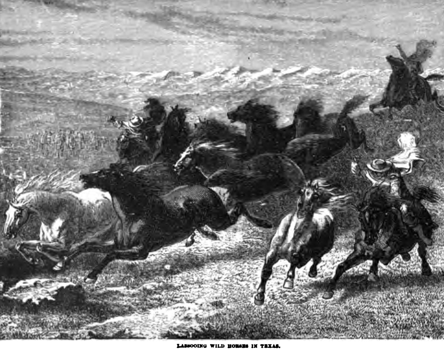 “Cattle and horses are said to be stampeded,” Mr. Graham answered, “when they take fright at anything and run away. The word is of Spanish origin and seems at present to be regularly adopted into our language. When a large herd of half-wild cattle is stampeded it is very apt to run over anything that comes in its way. Sometimes the herdsmen are thrown from their horses right in the midst of a frightened herd and trampled to death; if it happens that the herd separates at the moment a man falls the rest of it will do likewise and nothing serious occurs.