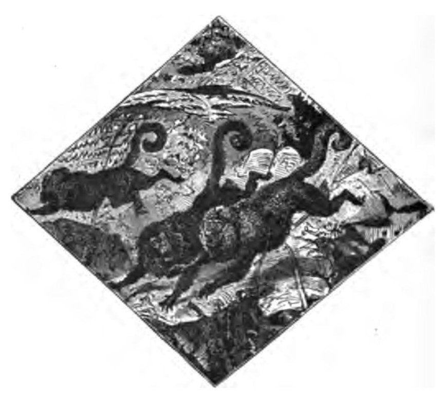 “Measured at its withers,” was the reply, “it is nearly six feet high, and it is immensely strong. Its horns are large, round and lateral, and its tail is long with a tuft of hair at the end. The shoulders and all the front part of the body are covered with long coarse hair very much like that of the American bison, and it has a long mane under its throat. The rest of the body has a thick coat of black hair, and altogether the aurochs is not an amiable looking beast.”