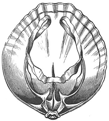 Among the most beautiful and fragile of all animals are the singular forms which we call jellyfishes (Fig. 19).[27] They are so delicate that we can not lift them, and in many instances they have ninety-five per cent of water in their composition. They would almost seem to be purely ornamental did we not know that they fill an important niche in the hall of nature, constituting almost the sole food of many whales.