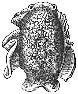 The sponges in their habits show a variety of tastes. Many grow in the mud, the majority upon rocks. On the New England shores there is one of a yellowish hue which lives in the sand. It is very light, and the pores are so fine that the sand does not enter them. After a storm on Cape Cod thousands are found on the beaches, blown far inshore. Black and pure white sponges are found in fresh water as well as in salt. They increase by depositing eggs. In one stage of their development the young (Fig. 14, V.) are free-swimming animals.