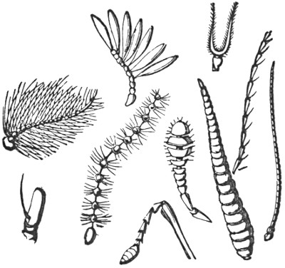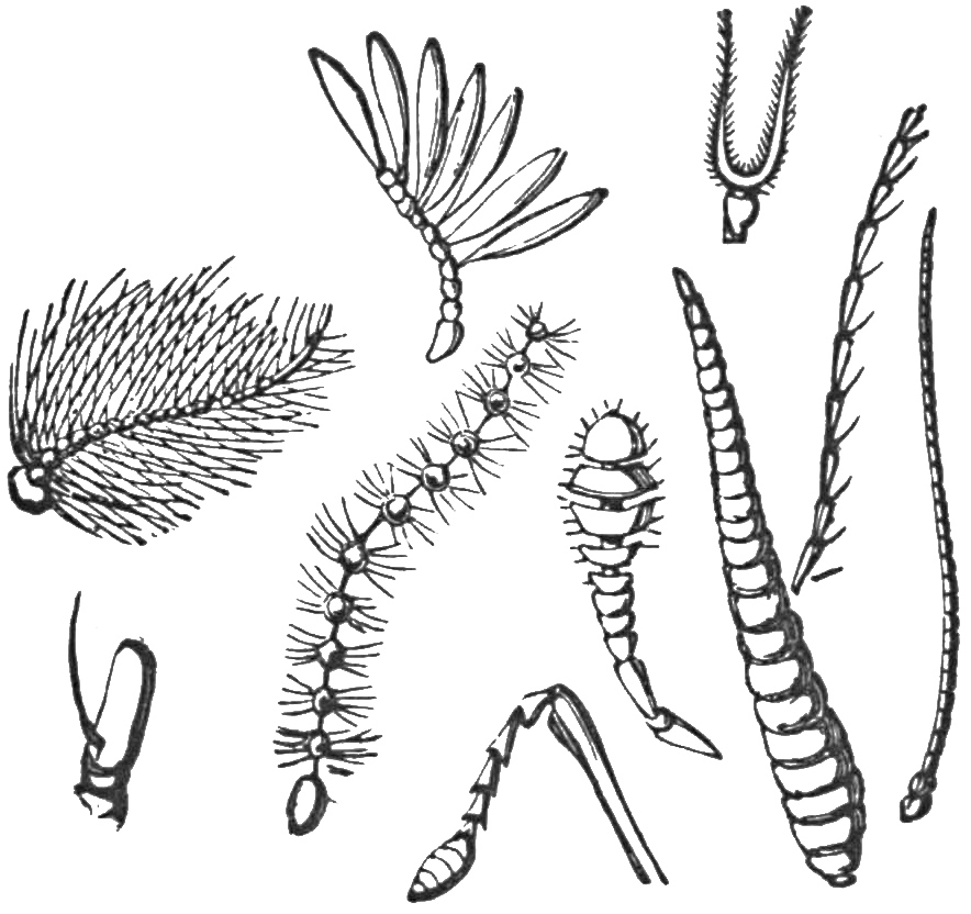 The ant is a trim, vigorous individual, fleet of foot, tireless, never weary, brave, industrious, a type of the worker. The head is large. The eyes are compound, with three single eyes. The antennæ are long, slender organs by which ants appear to recognize friends or foes, and possibly talk with them in some way. Certainly when two ants meet, a very strange interchange of courtesies with the antennæ is performed. The males and females are winged, and there is a third kind without wings, called workers.