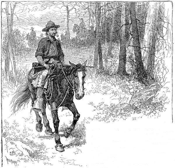 Well he might, considering how many of them there were in that country, and how near to him some of them were coming. All the way down the pass the ragged little Captain had ridden in advance of his men, carefully scanning every rock and bush and tree. At last he paused at the very spot where Bill and his companions had had their little difficulty. He seemed to see some signs that needed studying, and he stooped down and picked up something. Only a pair of strong thongs of buckskin, that looked as if they had been recently used in tying up something. He could make very little out of them; but he noticed the marks of horses' feet going in and out of the forest.
