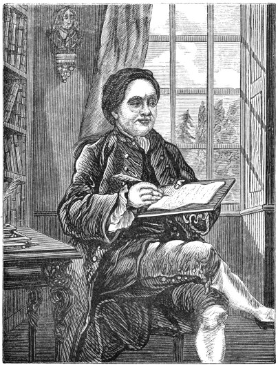 This “one name” was that of John Baskerville, a printer, a contemporary of Hutton, and one of the most famous English type-founders. Commencing life as a schoolmaster, his inclination for books turned his attention to type-founding, but he spent £600 before he produced one letter that thoroughly satisfied his exquisitely critical taste, and probably some thousands before his business began to prove remunerative; and, after all, his printing speculations yielded more honour than profit. Upon paying a heavy royalty to the University of Cambridge, he was allowed to print a Bible in royal folio, which, for beauty of type, is still unrivalled; but the slender and delicate form of his letters were, as Dr. Dibdin remarks, better suited to smaller books, and show to the greatest advantage in his 12mo. “Virgil” and476 “Horace.” His strenuous endeavours, and his large outlay, met with but little return; and he writes of the “business of printing” as one “which I am heartily tired of, and repent I ever attempted.” He died in 1775, and appears to have printed nothing during the last ten years of his life. By the direction left in his will, he was buried under a windmill in his own garden, with the following epitaph on his tomb-stone: “Stranger! beneath this cone, in unconsecrated ground, a friend to the liberties of mankind directed his body to be inurned. May the example contribute to emancipate thy mind from the idle fears of superstition, and the wicked arts of priesthood.” His fount of type was unluckily allowed to leave the country, and was purchased by Beaumarchais, of Paris, who produced some exquisite editions, particularly of Voltaire’s works, but who lost upwards of one million livres in his speculations.