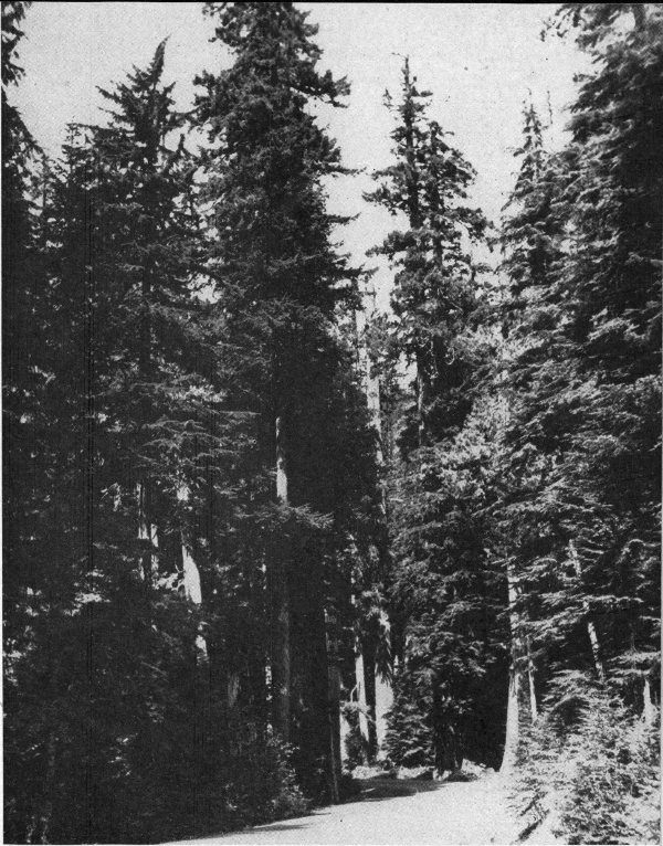 Canadian Zone: This zone does not become well defined until above the 3,000-foot level. There is a considerable mixture of both Transition and Canadian elements at the approximate area of separation. While still heavily forested, the trees of the Canadian Zone are noticeably smaller than those at lower elevations and the forest is more open in character. Although common tree species include the Douglas fir and western hemlock of the Transition Zone, the most typical trees are the silver fir, Alaska yellow cedar, noble fir, and western white pine. Other typical plants are the Canadian dogwood, pipsissewa, and Cascades azalea.