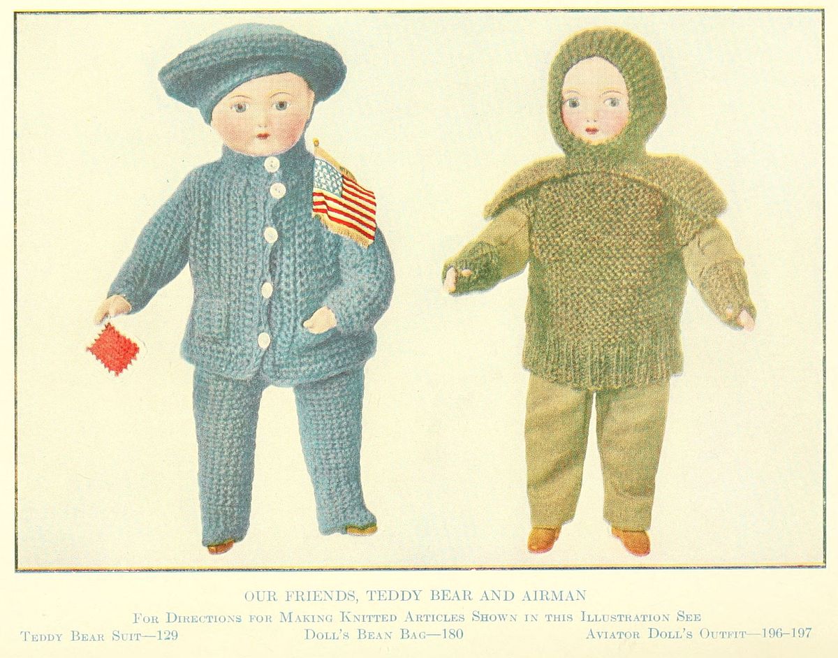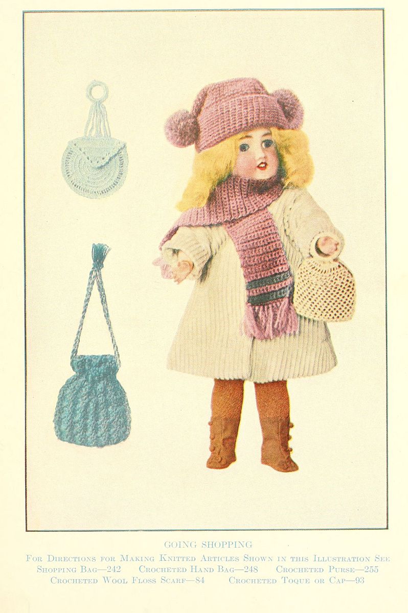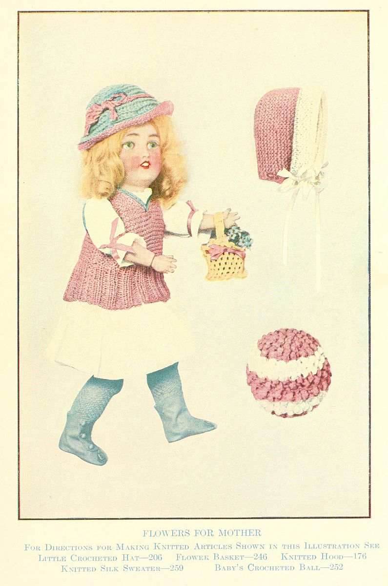 She says, too, that after a girl has learned to crochet and knit for dolls, it is “just as easy as a-b-c” to crochet and knit for real people; and that knitting articles for soldier boys and fathers and mothers makes a person feel of very much account.