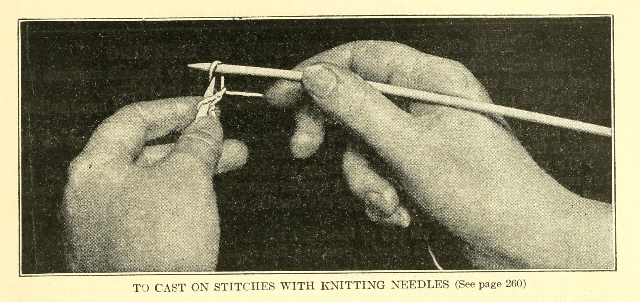 [J] See How to Cast On Stitches with Knitting Needle, pages 260 and 261.