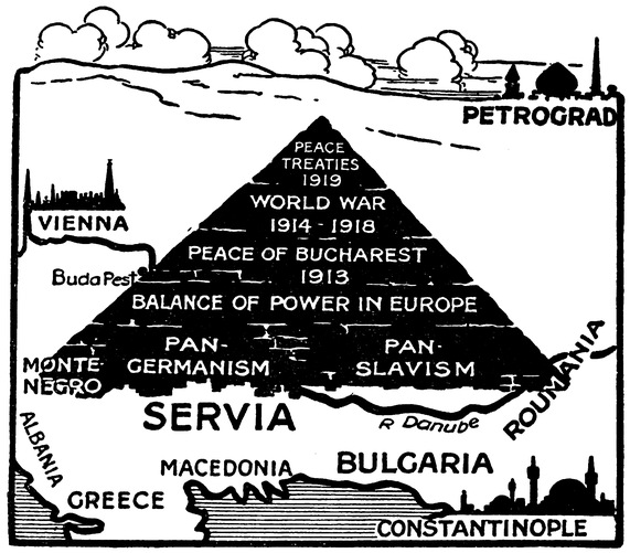In its broadest sense, that impulse had its source in a frame of mind, in a false conception, expressed in outworn governmental systems left uncontrolled and tolerated by the victims, who, though suffering, dreaded change. This frame of mind was general throughout Europe; it was not confined to the Central Empires, whose ruling classes, by their superior efficiency, merely offered the supreme example of autocratic Governments which aimed at world-dominion both in a political and economic sense. To the junkers and business men in Germany and Austria-Hungary, the war of liberation in the Balkans in 1912 was an opportunity to be seized, with a lack of scruple as cynical as it was frank, because they hoped to fish in troubled waters; its perversion into an internecine struggle was considered clever diplomacy. The Treaty of Bucharest in 1913 was regarded as a triumph of statecraft, since it caused a readjustment of the “Balance of Power” in favour of themselves. But179 the so-called democratic Western Powers gave their tacit acquiescence to these nefarious proceedings; their association with the Russian Empire, so far from being designed to correct immorality and injustice, perpetuated all the evils of a system based on interested motives and selfish fears. The family of nations consisted of six Great Powers; Small States existed under sufferance and were treated as poor relations. Their rights were nebulous and sometimes inconvenient, not to be recognized until they could be extorted. This happened sometimes. The “Balance of Power” was a net with closely woven meshes. Even the strongest carnivori in the European jungle required, at times, the assistance of a mouse.