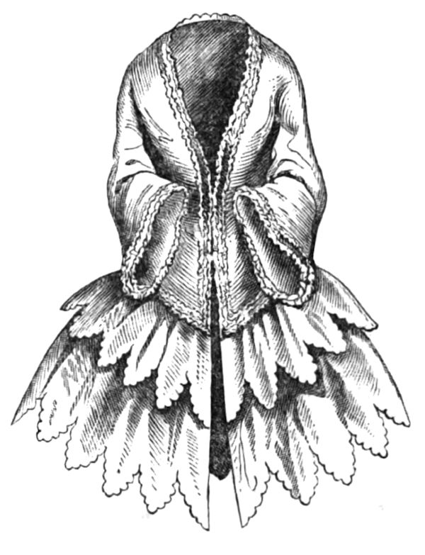 Pardessus for the house, of taffetas trimmed with ruches and pinked or scalloped trimmings.