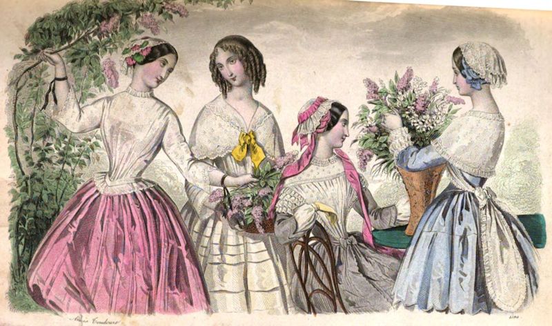 True Paris Fashions.—We resume with this number, our Paris Fashions, which our subscribers will at once see are far superior in beauty of design and coloring to any that have appeared in Graham for a long time. The order for this plate we sent to Paris the moment we ascertained that we should again become the exclusive conductor of “Graham,” and our agent is instructed to forward one each month, from the best houses there, to appear simultaneously with the same designs in Paris. We thus furnish our colored plate—one month in advance of even wood-cut fashion plates—and at least two months earlier than those which are re-engraved and colored in this country. This single feature of “Graham” renders it superior to any work in this country, in regard to embellishments.