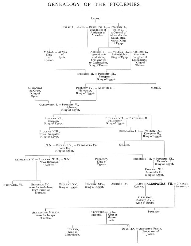 In the Genealogy Chart, “CLEOPATRA VII.” was printed in all-caps boldface. Other all-caps names originally were printed in small-caps.