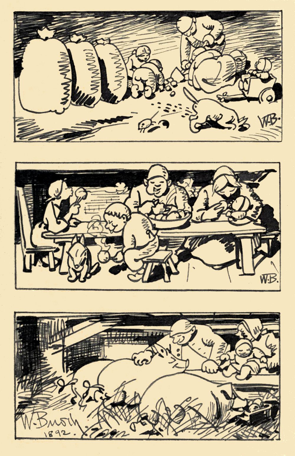 zu Bl. 55: »November 1892 hab ich Text und Zeichnungen auf Wunsch des Redacteurs Trojan dem »Kladderadatsch« für eine Nummer unentgeltlich zur Verfügung gestellt (erschienen zu Weihnachten) mir im Übrigen aber alle Rechte vorbehalten.