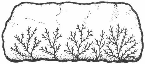 This process, known also as distillation takes place as organic matter slowly decays after burial. During the process of decomposition, the organic matter gradually loses its gases and liquids leaving only a thin film of carbonaceous material (Pl. 2, fig. 7). This is the same process by which coal is formed, and large numbers of carbonized plant fossils have been found in many coal deposits.