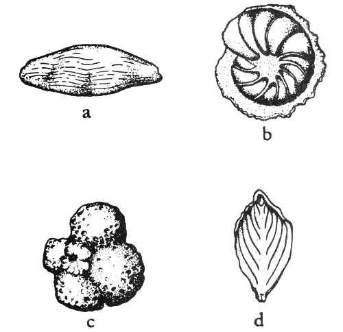 Hard parts composed of calcite (calcium carbonate) are very common among the invertebrates. This is particularly true of the shells of clams, snails, and corals. Many of these shells have been preserved with little or no evidence of physical change (Pl. 2).