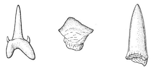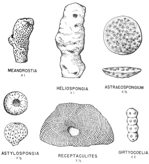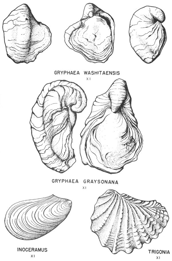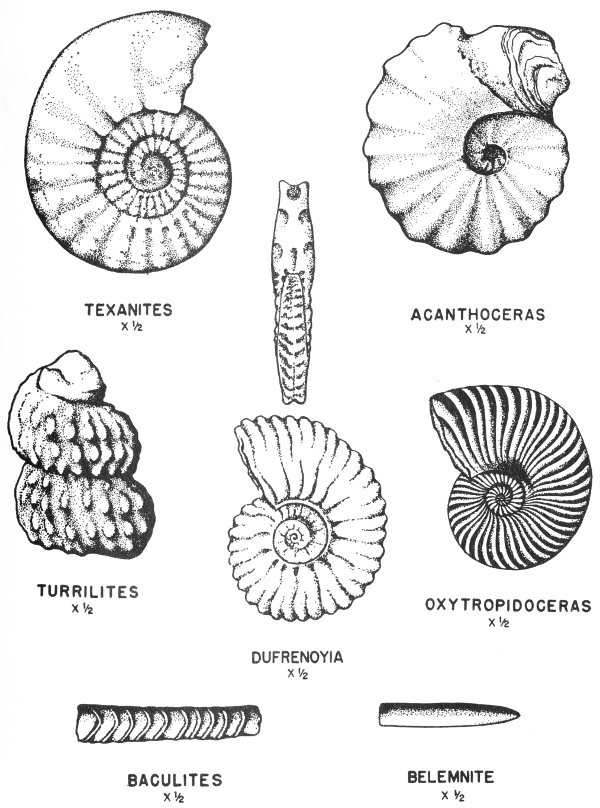 At certain localities in north and central Texas the Woodbine sands of Upper Cretaceous age (geologic time scale and geologic map, Pls. 1, 10) contain large numbers of shark and fish teeth (Pl. 37), fish scales and vertebrae. The remains of these vertebrates are unusually well preserved and are prized by both amateur and professional collectors.