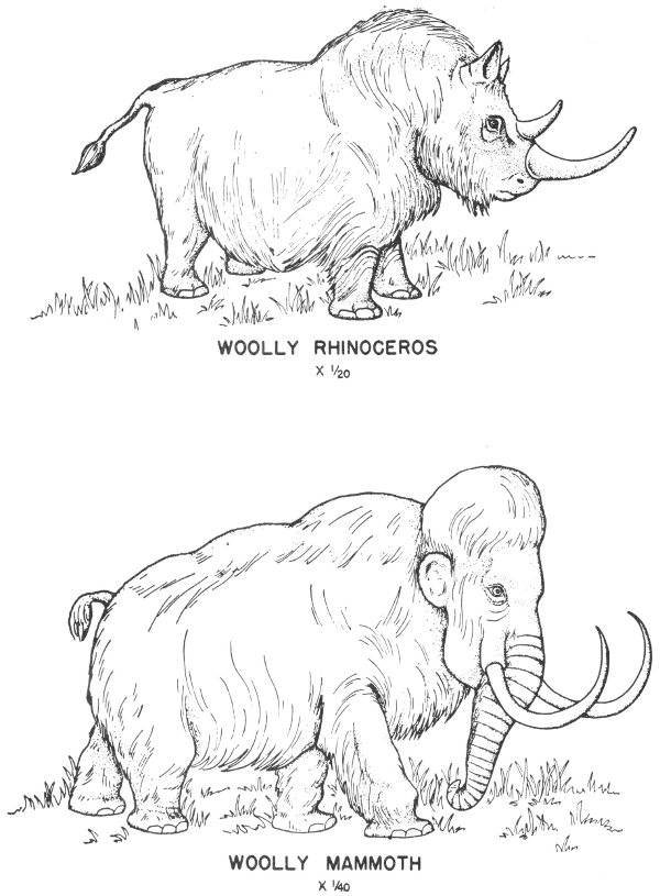 Probably the best-known examples of preserved soft parts of fossil animals have been discovered in Alaska and Siberia. The frozen tundra of these areas has yielded the remains of large numbers of frozen mammoths—a type of extinct elephant (Pl. 49). Many of these huge beasts have been buried for as long as 25,000 years, and their bodies are exposed as the frozen earth begins to thaw. Some of these giant carcasses have been so well preserved that their flesh has been eaten by dogs and their tusks sold by ivory traders. Many museums display the original hair and skin of these elephants, and some have parts of the flesh and muscle preserved in alcohol.