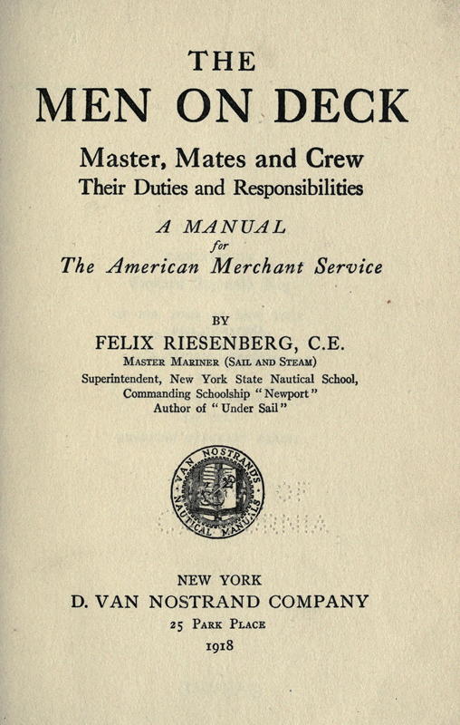 It is also hoped that the book will help to inform owners and shore managers of the kind and quality of service that they should expect from sea officers and men. It is hoped that it will also aid in creating a greater respect for the quality of the men who go down to the sea in steamers; sail has gone, but a mighty wake of heavy gear and great responsibility has come along to take its place.