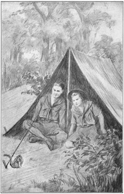 “Oh positively not,” said Roy; “he depends on his own initials. Just make yourselves at home and he’ll have supper ready in a couple of jiffies. You fellows came to the right place, you can all have forty-eleven helpings of resources. He knows that a scout never turns back. Some night after supper drop down to camp and see us.”