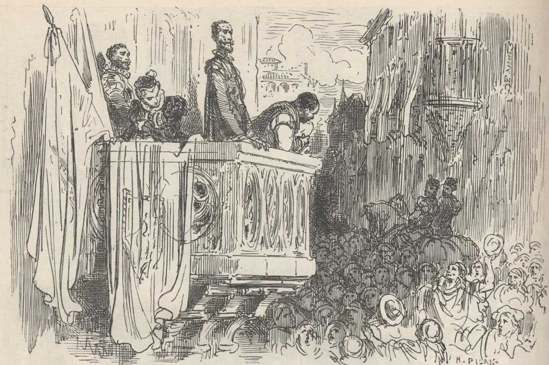 Then Don Quixote came forward and said, "Tell me, thou that answerest, was that which I describe as having happened to me in the cave of Montesinos the truth or a dream? Will Sancho's whipping be accomplished without fail? Will the disenchantment of Dulcinea be brought about?"