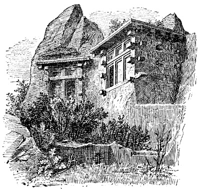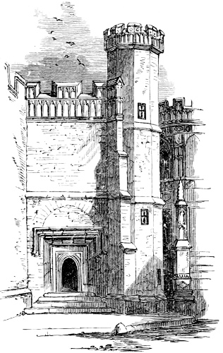A quoted passage on p. 326, begins with “It was built probably...”, and apparently continues into the following paragraph (without the conventional opening quotation mark) and ends with “... total height is 33 feet 6 inches.” It is unclear how much of this passage is a direct quotation, since it includes a reference to an illustration in the current text. In any case, it is given here as printed.