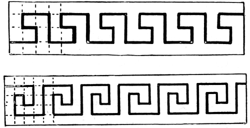 Realistic decoration was the earliest form of all art, as we find it in the etchings on the bones drawn by the prehistoric cave-dwellers; but ornamental design or pattern drawing is a kind of invention which implies the orderly decoration of architectural forms and other objects, and is generally applied to such objects with the view of adding some enrichment that shall make them more pleasing to the sight.