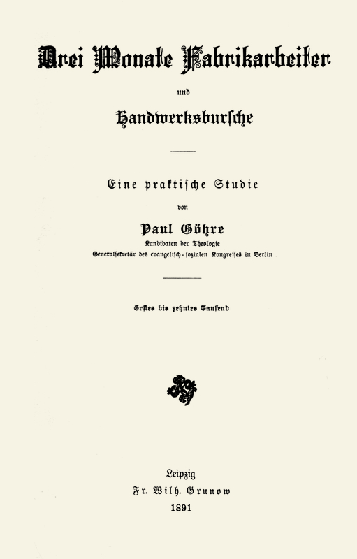 Seit Jahren für das Studium der sozialen Frage vom religiösen und kirchlichen Standpunkte aus erwärmt, war es vor allem eines, das mich bisher einen klaren Blick, ein sicheres Urteil, einen festen Haltepunkt zu gewinnen immer wieder verhinderte: die zu geringe Kenntnis der Wirklichkeit, der thatsächlichen Lage derer, um derentwillen wir eine soziale, eine Arbeiterfrage haben. Zwar giebt es[S. 2] eine reiche Litteratur. Aber wer verbürgte mir die Richtigkeit der gegebenen Darstellungen? Wo ist die Wahrheit? Bei dem Optimisten, der die Lage der Arbeiter als durchaus nicht so erbarmungswürdig schildert, oder bei dem Pessimisten, der alles Schwarz in Schwarz sieht und die Zukunft nur als Revolution? In den sozialdemokratischen Schriften, die, so scharf und bedeutungsvoll ihre Kritik an den bestehenden Verhältnissen auch ist, doch für nichts weniger als unparteiisch und sachlich gelten und, fast alle Agitationsschriften, jedenfalls wissenschaftlichen Wert nicht beanspruchen können? In den weniger zahlreichen Äußerungen von Arbeitgebern, die in dieser Angelegenheit ebenso Partei sind, wie die Arbeiter selbst? Oder gar in unsrer periodischen und Tagespresse, die beinahe durchgängig Parteipresse ist und als Vertreterin bestimmter Interessengruppen die Dinge immer nur von ihrem einseitigen, egoistischen Interessenstandpunkte aus zu würdigen und zu Gunsten ihrer Partei auszubeuten geneigt ist? Oder endlich in den Schriften von Geistlichen? Gewiß wird dem Pastor durch seine seelsorgerische Thätigkeit eine Fülle von Erfahrungen zur Verfügung stehen; ob aber gerade besonders reichlich und der Wirklichkeit entsprechend unter den Arbeitern, die je länger desto mehr sich von der Kirche und ihrem Einflusse fern zu halten suchen? Und dann ist eins zu bedenken: vor dem Träger des geistlichen Amtes pflegt sich jedermann, auch der Arbeiter, gern in sein Sonntagsgewand, thatsächlich wie bildlich gefaßt, zu werfen; die innersten Gedanken der Leute, ihre Gesinnung, die sie nur äußern, wenn sie unter sich und unbelauscht sind, lernt auch er nur sehr schwer und lückenhaft kennen. Und eben das war es, was ich vor allem wissen wollte, um darauf mein weiteres Studium und meine spätere Arbeit bauen zu können: die volle Wahrheit über die Gesinnung der arbeitenden Klassen, ihre materiellen Wünsche, ihren geistigen, sittlichen, religiösen Charakter.