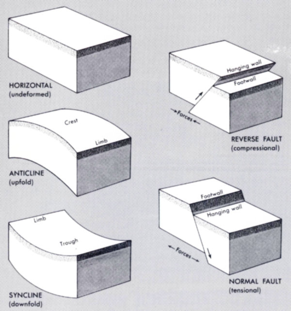 If we were to walk backward in time at the rate of one century per step, the first step would return us to 1872, the year that Yellowstone National Park was established. But to return to the oldest recorded event in its geologic history, we would have to walk (at 3 feet per step) some 15,000 miles, or three-fifths of the way around the world! Occurring far back in the antiquity of the Precambrian Era—approximately 2.7 billion years ago according to radiometric dating (fig. 6)—the oldest event resulted in rocks so crumpled and changed by heat and pressure that their original character is obscure. These rocks, having been transformed from still older ones, are called metamorphic rocks. Considered to form part of the very foundation of the continent itself, they are also commonly referred to as basement rocks.