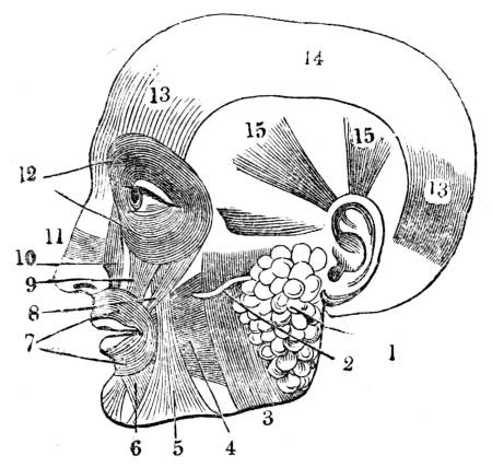 936. The effect of the suppression of excretion, when the suppression is complete, is appalling. Stop the respiration, that is, suspend the depurating action of the lungs, carbon accumulates in the venous blood; carbon mixes with the arterial blood; in half a minute the blood flowing in the arteries is evidently darkened; in three-quarters of417 a minute it is of a dusky hue; in a minute and a half it is quite black; every particle of arterial blood has now disappeared, and the whole mass is become venous. With the first appearance of the dusky hue great disturbance is produced in the system; the instant it becomes dark sensibility is abolished; in a few minutes after it is black the power of the heart is so enfeebled that it can no longer carry on the circulation, and in a few minutes more its action wholly ceases, and can never again be excited. The brain feels the poison first, and is first killed; but the heart cannot long resist the fatal influence.
