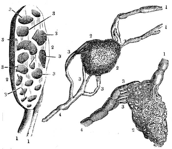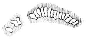 351. In this simple apparatus is apparent the rudiment of the more perfect aërial respiration by the organs termed tracheæ, minute air tubes which ramify like blood-vessels through the body (fig. CXXX. 3). These air tubes open on the external surface by distinct apertures termed spiracula or spiracles (fig. CXXX. 2), which are commonly placed in rows on each side of the body (fig. CXXX. 2), with distinct prominent edges (fig. CXXX. 2), often surrounded with hairs; sometimes guarded by valves to prevent the entrance of extraneous bodies, and capable of being opened and closed by muscles specially provided for that purpose. These tubes, as they proceed from the spiracles to be distributed to the different organs of the body, often present the appearance of radii (fig. CXXX. 3), and when traced to their terminations are found30 to end in vesicles of various sizes and figures, but commonly of an elongated and oblong form. These minute vesicles, when examined by the microscope, are seen to afford still minuter ramifications, which are ultimately lost in the tissues of the body.