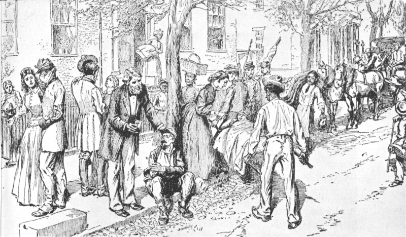 About dawn a large crowd gathered in front of the huge government commissary at Fourteenth and Cary streets, on the eastern edge of the fire. The doors were thrown open and the government clerks began an orderly distribution of the supplies. Then the drunken mob joined the crowd.