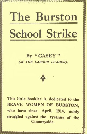 The Project Gutenberg eBook, The Burston School Strike, by Casey This eBook is for the use of anyone anywhere in the United States and most other parts of the world at no cost and with almost no restrictions whatsoever. You may copy it, give it away or re-use it under the terms of the Project Gutenberg License included with this eBook or online at www.gutenberg.org. If you are not located in the United States, you'll have to check the laws of the country where you are located before using this ebook. Title: The Burston School Strike Author: Casey Release Date: April 26, 2020 [eBook #61938] Language: English Character set encoding: ISO-646-US (US-ASCII) ***START OF THE PROJECT GUTENBERG EBOOK THE BURSTON SCHOOL STRIKE***