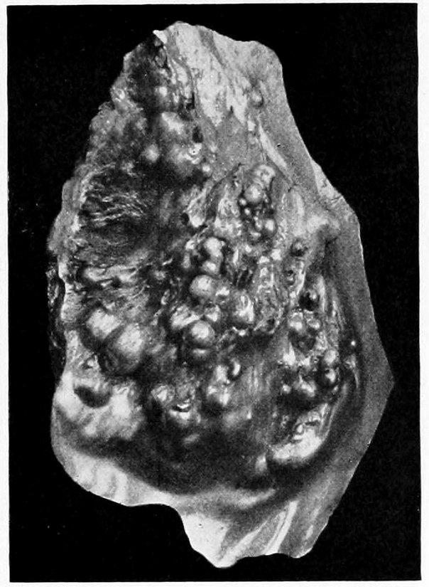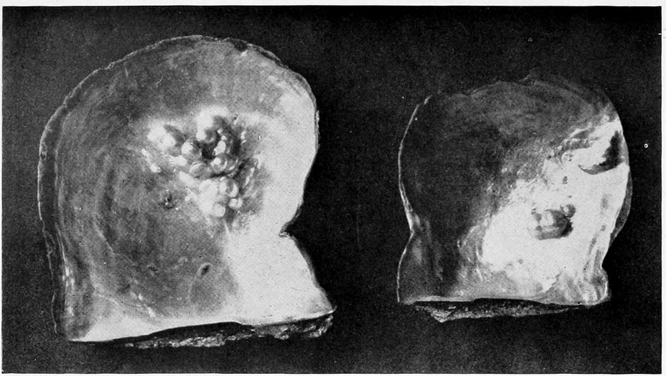 Shells from Venezuela with attached pearls. Exterior view of same. X-ray photograph of shell, printed through exterior of shell and showing encysted pearls | 39 |
