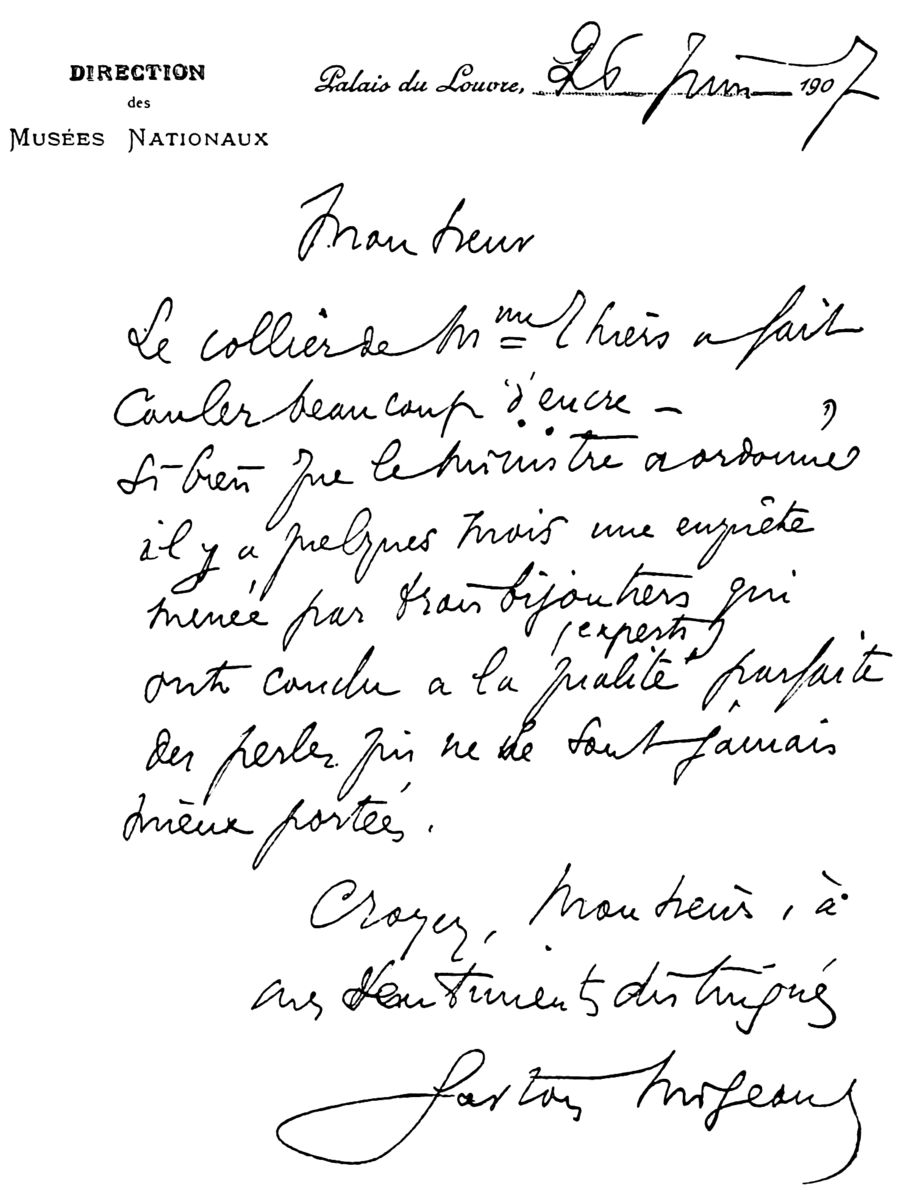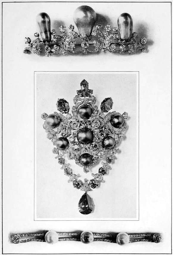 526. As this pearl was brought from the East later on, it may be the same as the Reine des Perles, stolen from the French crown jewels in 1791. It is evidently the same as the La Pellegrina of the Zozima brothers (1814) and later stolen from them, reappearing as the pearl described by Kohl, in 1840, first in the possession of a Russian merchant and then later in the Russian Treasury.