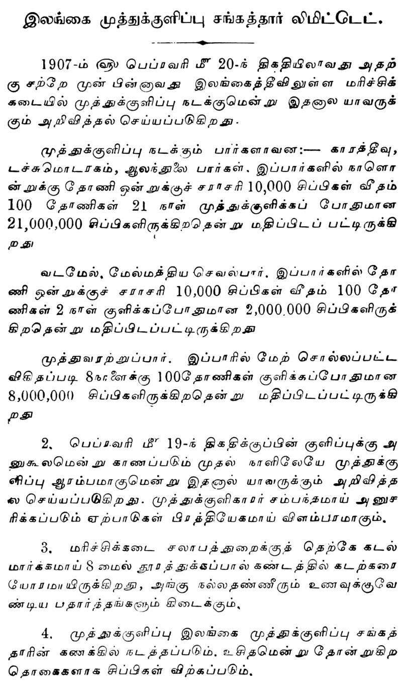 Facsimiles of notices of pearl-fishing at Marichchikadde, in English and Cingalese | 110–111 |