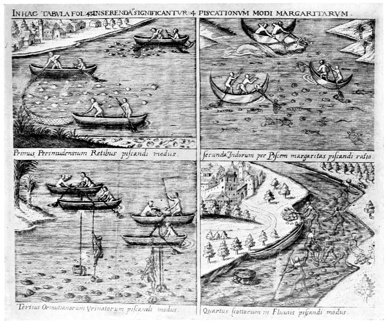 Old print showing four methods of catching pearl-bearing mollusks | 160 |